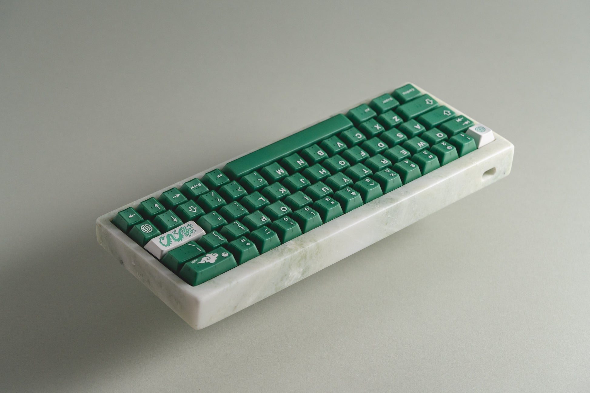 The design is simple and intentional: marble first, keyboard second. We didn’t chase trends like low front height, because reducing the case structure also reduces the resonance that makes the sound so unique. Instead, we embraced the natural density and texture of marble. For comfort, we recommend pairing it with a wrist rest.